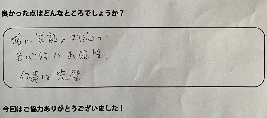 常に笑顔の対応で良心的なお値段。仕事は完璧。