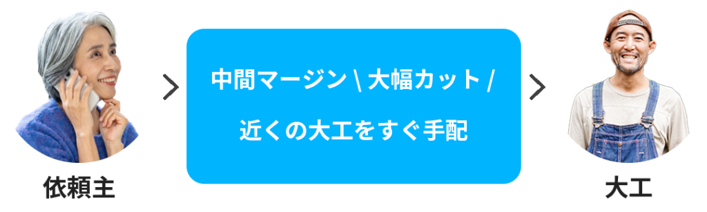 当社は独自のシステム構築で実際作業される大工を直接おつなぎし、どこよりも早く、そして納得のコスパを実現しております。