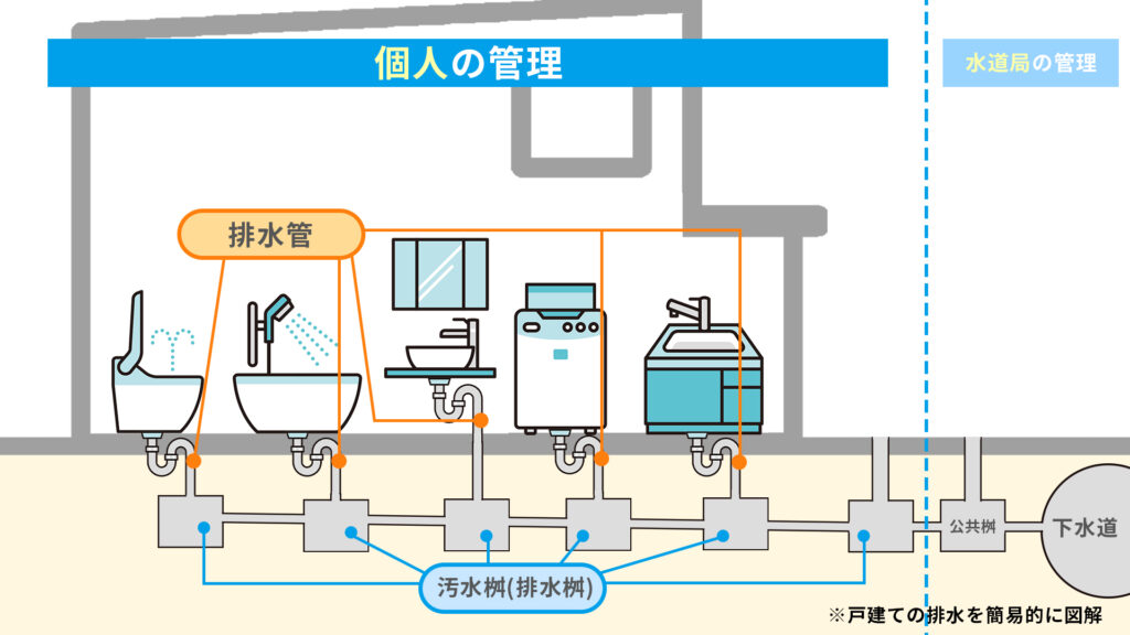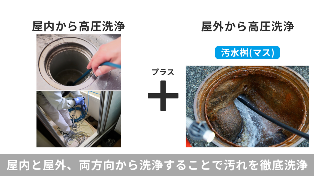 屋外の各汚水桝から内部の排水管までまるっとお掃除プランです。