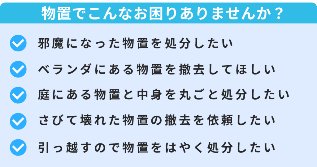 物置解体、処分は地域密着の解体業者が最短即日解決します