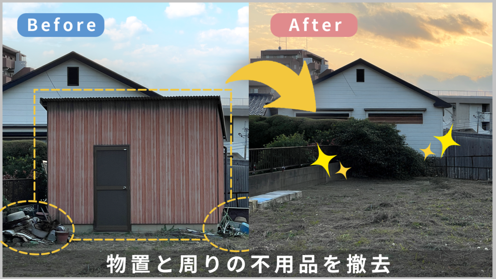 物置が無くなった後を見て皆様「こんなに広かったんだ!」と感動頂いてます。ぜひこのスッキリ感のお手伝いをさせてください。